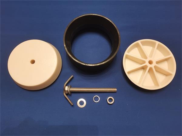 由兩個增壓盤、一個密封膠圈、一個密封墊和一套不銹鋼螺栓共五部分構成如下圖: