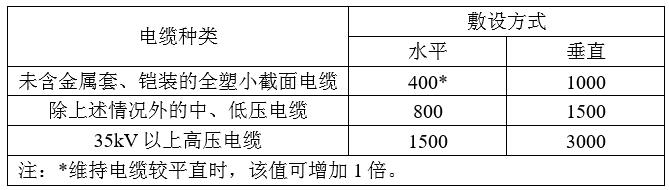 6.1.2直接支持電纜的普通支架(臂式支架)、吊架的允許跨距宜符合表6.1.2的規定。