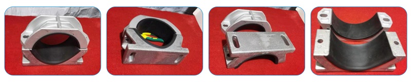 加強(qiáng)型鋁合金電纜夾具產(chǎn)品與其它結(jié)構(gòu)夾具相比主要優(yōu)點(diǎn)是:安全可靠和安裝方便。原理是底座為雙層結(jié)構(gòu)含有底層和上層(見(jiàn)照片),施工時(shí)分兩次安裝固定。底層可以提前單獨(dú)用螺栓固定到鐵塔上面。待底座內(nèi)放入電纜后,再用螺栓將底座上層和夾具上蓋將電纜固定。此種結(jié)構(gòu)可以完全滿(mǎn)足底座螺栓固定力大于夾緊電纜的螺栓固定力技術(shù)要求。