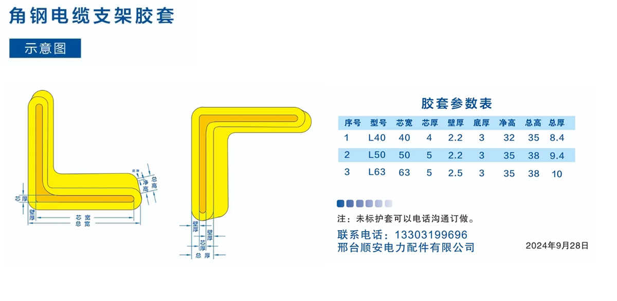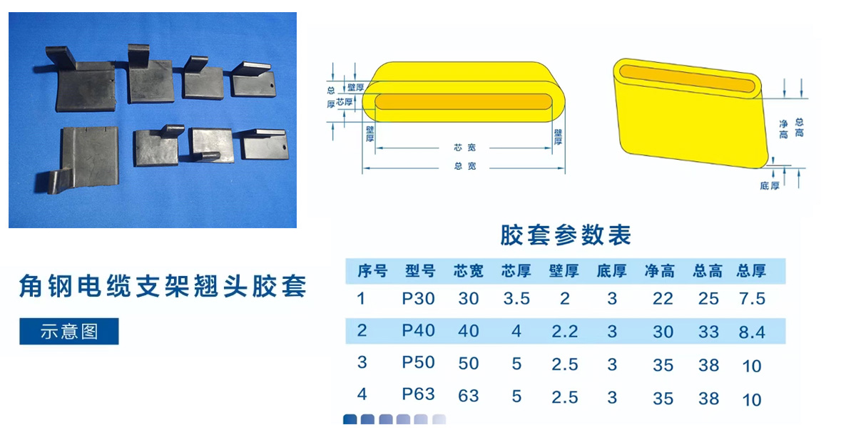 我公司是專門生產電纜支架橡膠護套、橡膠絕緣墊的廠家,自2009年開始生產此產品至今已有13歷史了。十幾年來該產品在電網工程中得到了廣泛應用,它有效防止了角鋼支架端頭邊角毛刺劃傷施工人員、劃傷電纜事故的發生;也防止和減少了電纜接地事故的發生。為電網安全運行做出了應有的貢獻�,F將電纜支架橡膠護套和絕緣墊分別介紹如下: